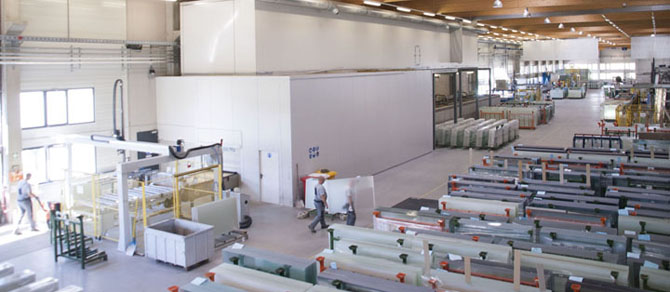 Kontinuierliche thermische Härtlinie für Glasstärken von 2,5 mm bis zu 10 mm gemäß der internationalen Norm EN 12150.